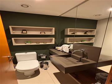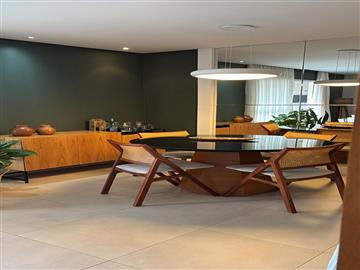 A unidade possui 03 dormitórios sendo 01 suíte, sala de TV, sala de estar e sala da jantar, sacada com churrasqueira, escritório, cozinha, 01 wc social, 01 lavabo, área de serviço e 02 vagas de garagem.